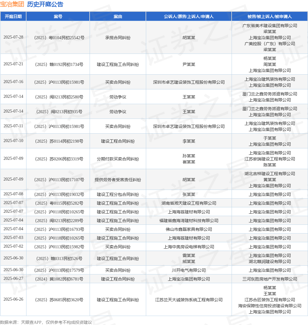 本站消息,根据天眼查APP显示,近日公布了一则上海宝冶集团有限公司作为被告/被上诉人的开庭公告,详细内容如下: 案号:(2025)沪0113民初15603号审理法院:上海市宝山区人民法院案由:买卖合同纠纷当事人信息: 原告/上诉人:西安建科门窗有限责任公司 被告/被上诉人:上海宝冶集团有限公司开庭日期:2025年6月17日根据统计,近一年内以上海宝冶集团有限公司为当事人的历史开庭公告有496则,其中案由为“买卖合同纠纷”的公告以118则居首,其次为“建设工程施工合同纠纷”有108则,“建设工程分包合同纠纷”有44则。历史开庭公告(前20条)如下: